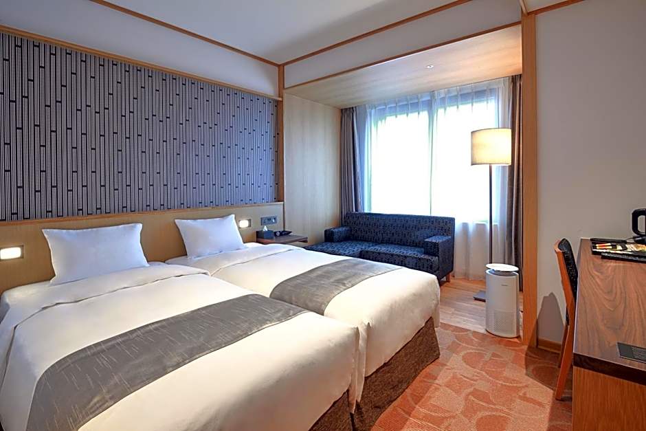 The twin room includes a private bathroom, well-fitted with a bath, a bidet, a hairdryer and slippers. The air-conditioned twin room provides a flat-screen TV with satellite channels, a seating area, a safe deposit box, an electric kettle as well as city views. The unit offers 2 beds.